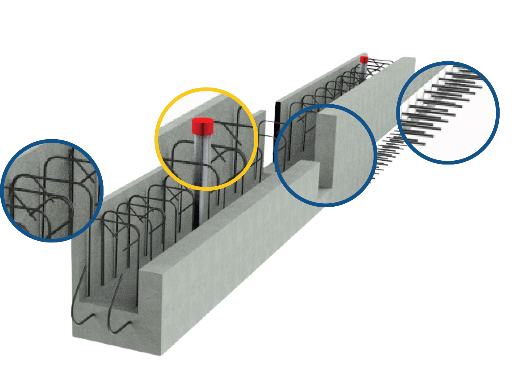 - Absence de filants en partie haute afin de faciliter la pose des prédalles ou dalles alvéolaires.