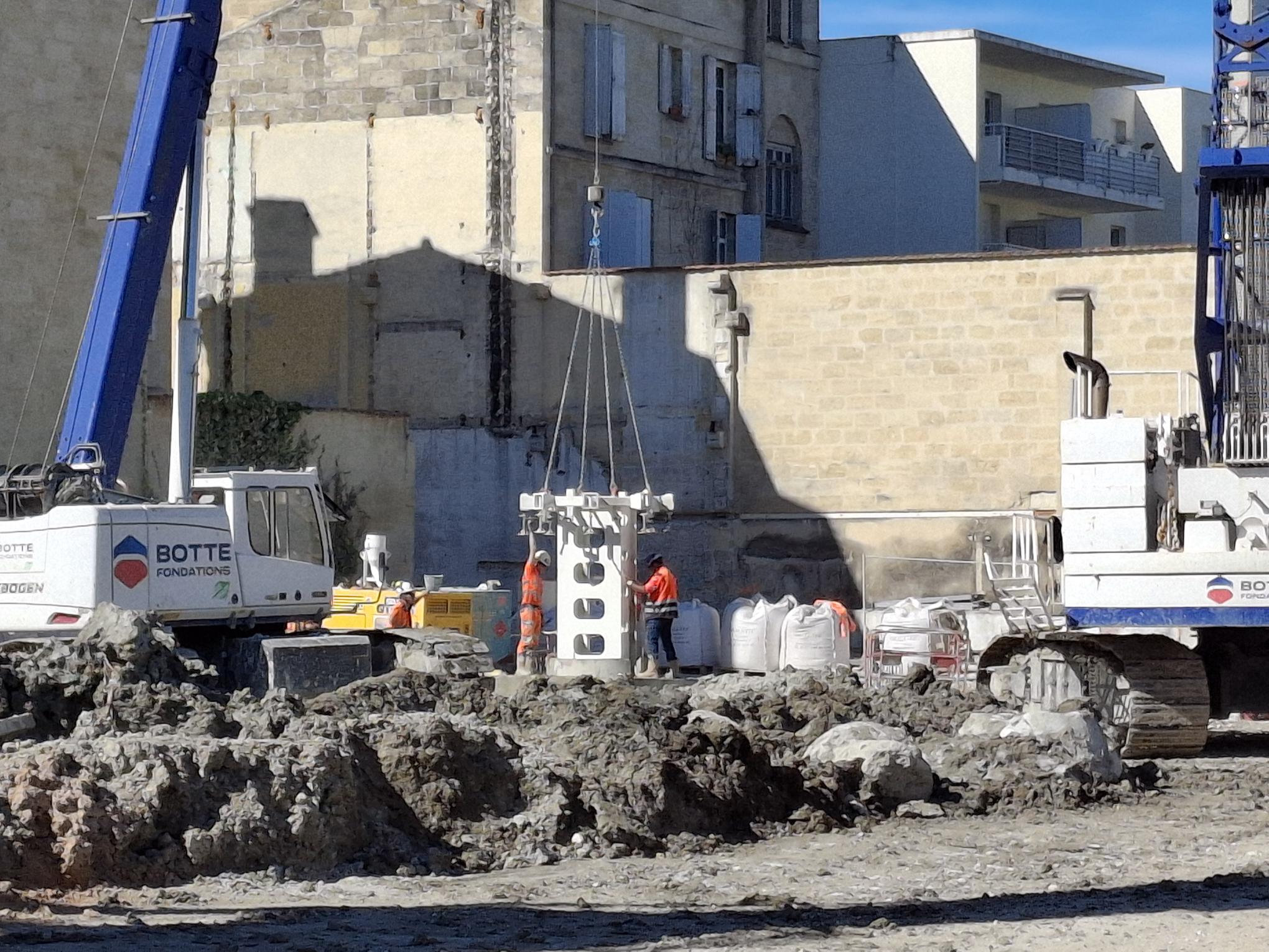 La pose des préfondés est réalisée par Botte Fondations, dans le cadre du lot Descas, en groupement avec GCC, l’ETI de préférence et DEMATHIEU BARD.