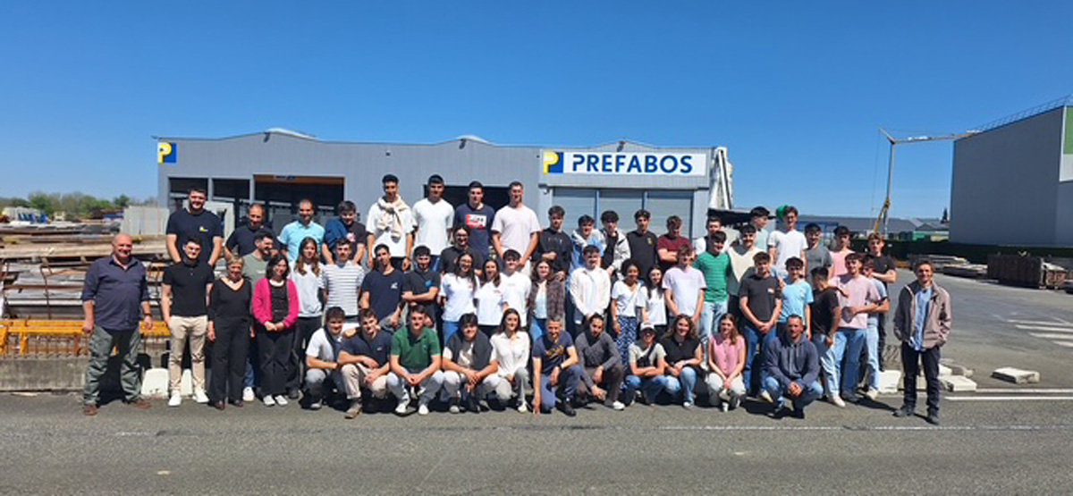 Au programme : une visite guidée de notre bureau d’études et de notre atelier de production, l’occasion d’explorer notre savoir-faire en matière de solutions précontraintes et sur-mesure. Les élèves ont ainsi pu découvrir notre nouvelle ligne de Prémurs ainsi que nos trois pistes supplémentaires dédiées aux Prédalles précontraintes.